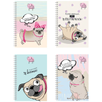 Записная книжка А6 80л., на гребне BG 'Милый мопс', глянцевая ламинация, твердая обложка, ассорти