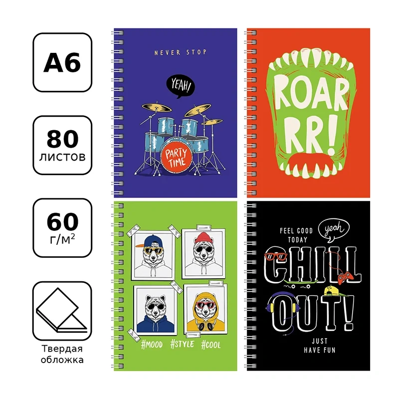 Записная книжка А6 80л., на гребне BG 'Party time', глянцевая ламинация, твердая обложка