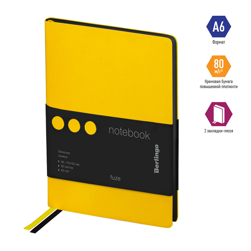 Записная книжка Berlingo Fuze желтая, А6, 80 листов, кожзам