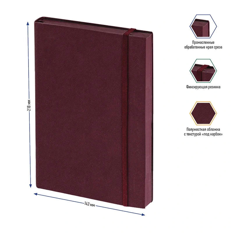 Записная книжка Berlingo Western формата А5 с полужесткой обложкой и стильным тиснением под карбон – идеальный подарок для деловых людей. Обложка и срез выполнены в коричневом цвете. Прошитый внутренний блок из 80 листов кремовой бумаги повышенной плотности 80 г/м? имеет перфорированные уголки и линовку в клетку. Записная книжка Berlingo Western подходит под персонализацию, внутри 2 удобные закладки-ляссе. В подарок – 3 комплекта стикеров с латинским, русским алфавитом и пиктограммами. Записная книжка представлена в размере 143*210 мм.