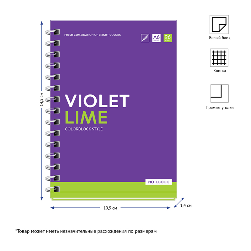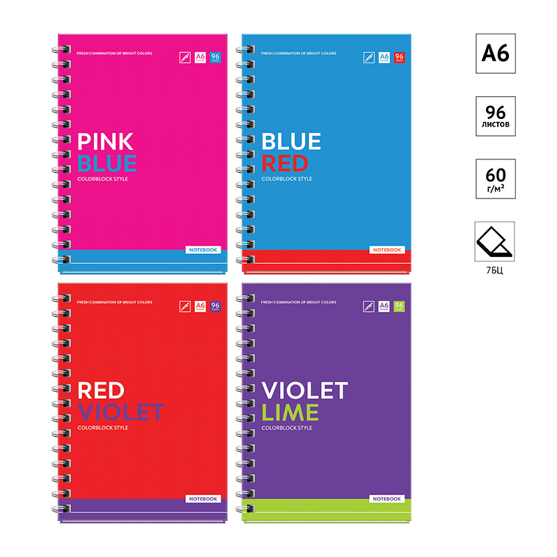 Записная книжка формата А6, 96 листов, в твердой обложке с глянцевой ламинацией. Внутренний блок - белая офсетная бумага плотностью 60 г/кв.м, в клетку без полей.