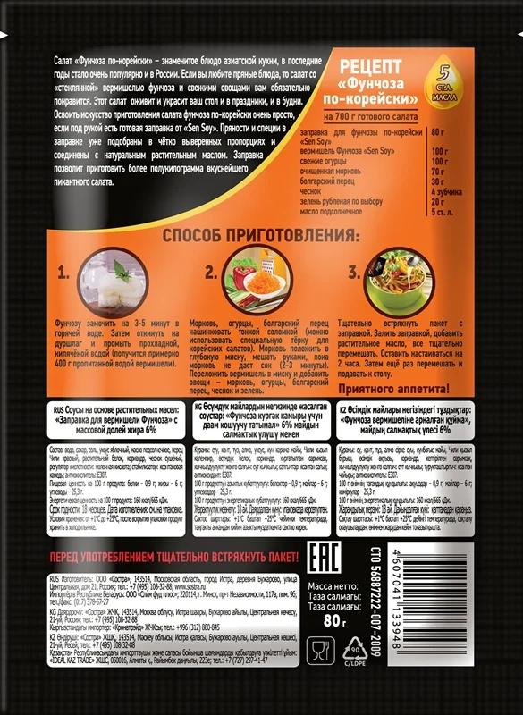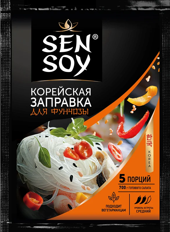 Фунчоза - одно из самых популярных блюд азиатской кухни. Это и праздничное угощение, и будничная закуска. Приготовление фунчозы - настоящее искусство. Надо иметь достаточно терпения и опыта, чтобы правильно приготовить бобовую вермишель, тонко настругать морковь и огурчики, но самое сложное - безошибочно смешать ингредиенты особой заправки на основе растительного масла. Ее приготовление станет легким и доступным с заправкой Sen Soy Premium.