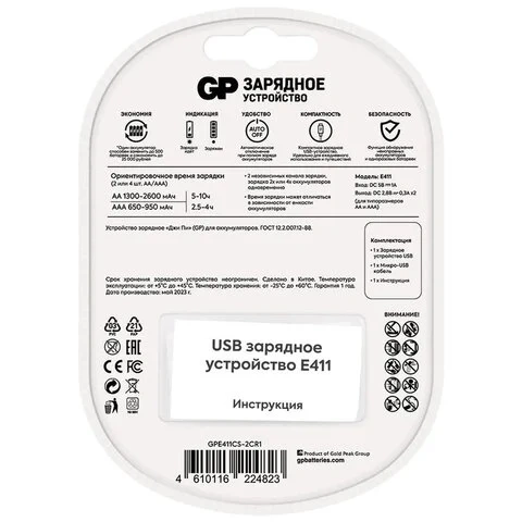 Зарядное устройство GP Е411CS-2CR1 AA/AAA NiMH блистер