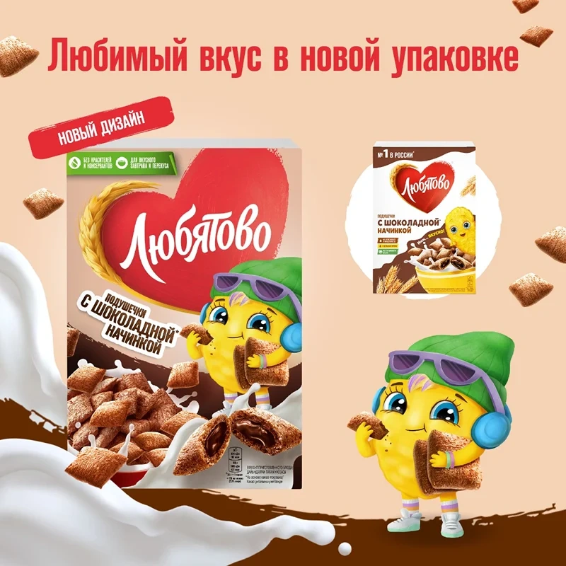Завтрак готовый Подушки шоколадные Любятово, 500 г – это питательный и быстрый вариант для всей семьи. Он отличается хрустящей структурой, ярко выраженным вкусом и приятным ароматом. Продукт содержит вредных добавок, ароматизаторов и ГМО.