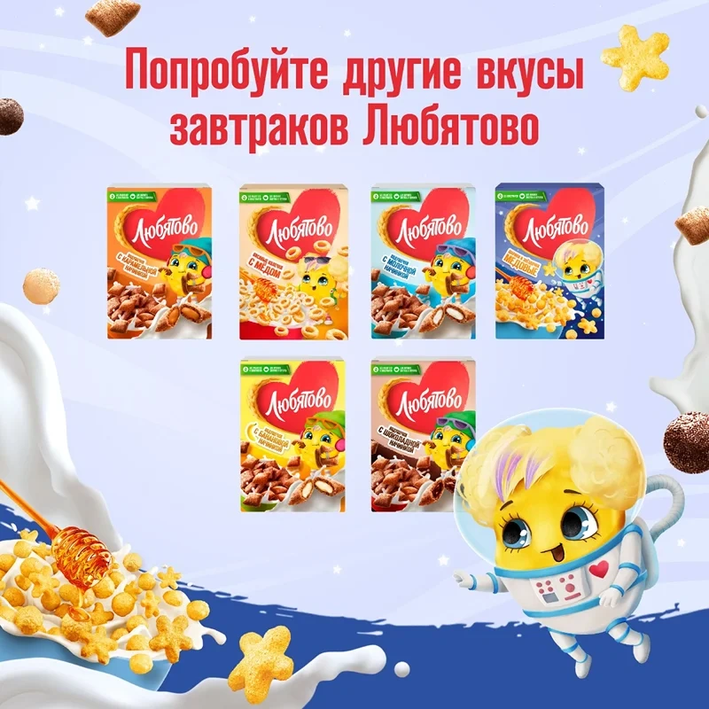 Готовый завтрак Любятово Медовые шарики и звездочки, 420г