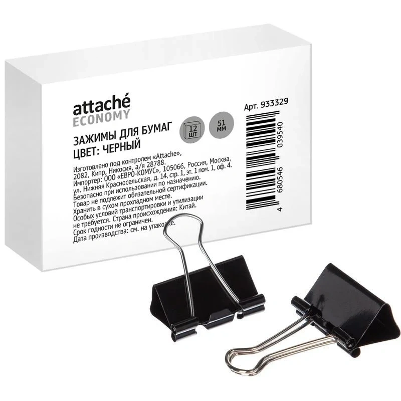 Зажим для бумаг 51мм 12шт/уп Attache Economy, в карт,кор, цвет чёрный