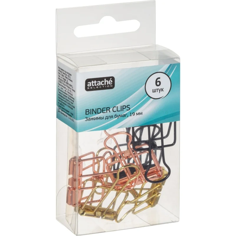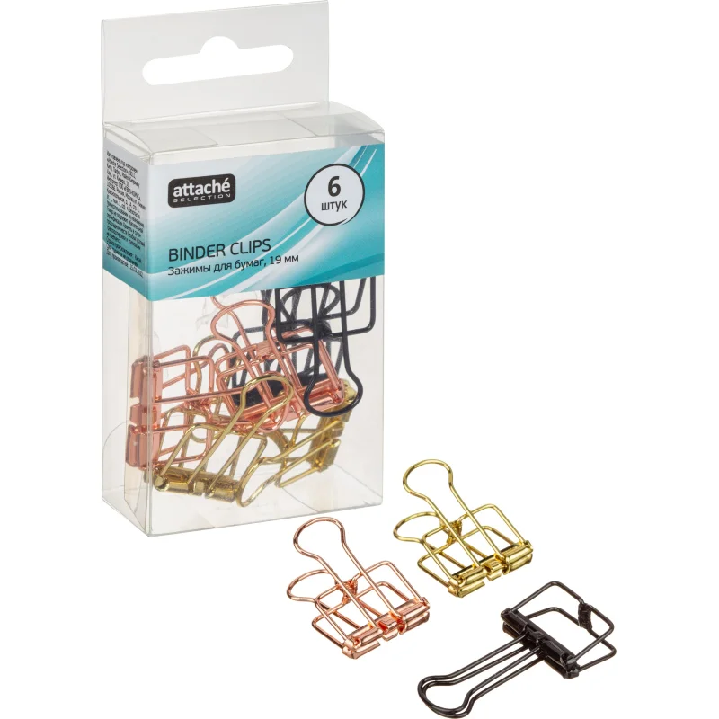 Зажимы для бумаг Attache Selection 19мм, цветные, 6 шт/уп