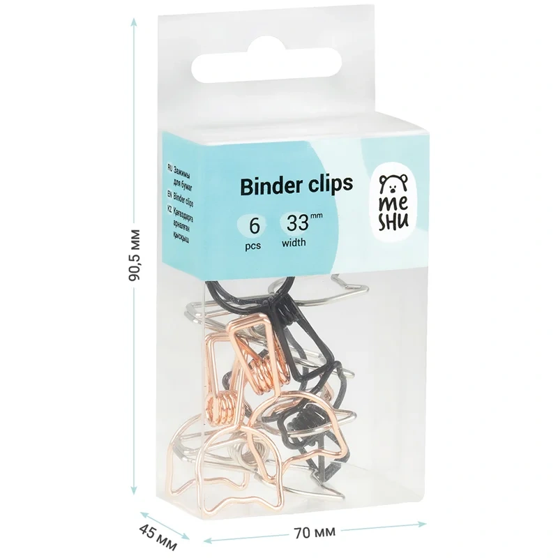 Зажимы для бумаг 33мм, Meshu 'Cute Cats', 6шт., ассорти, бокс с европодвесом