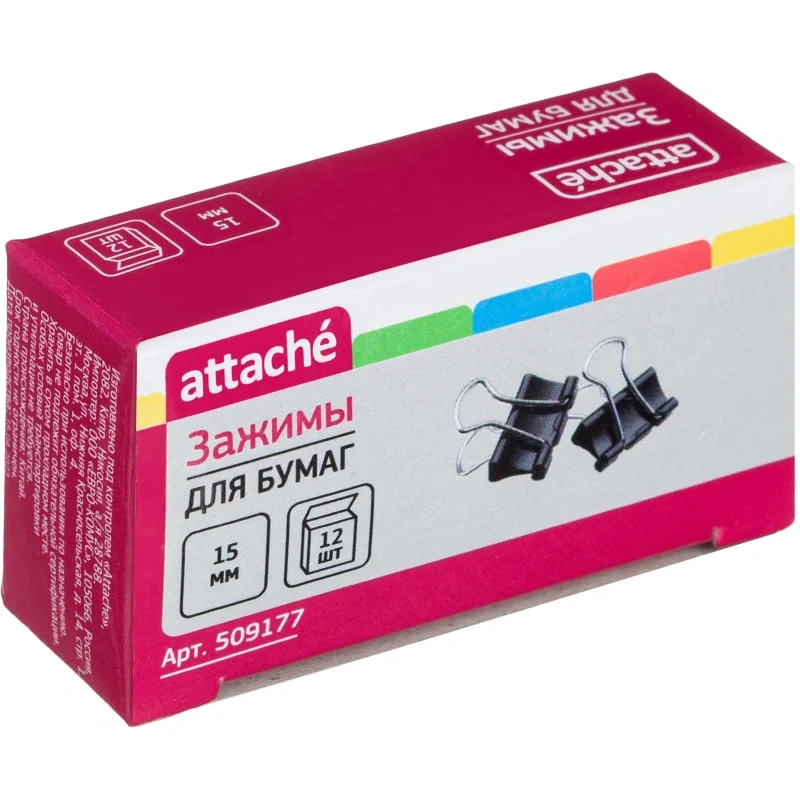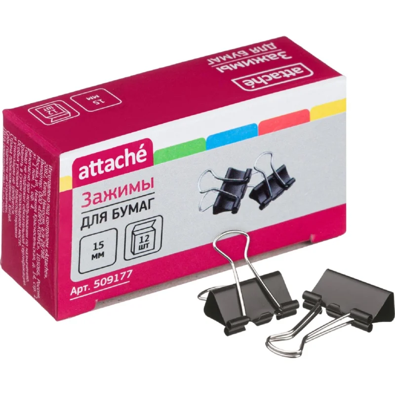 Зажимы для бумаг Attache 15мм, черные, 12шт/уп, в коробке