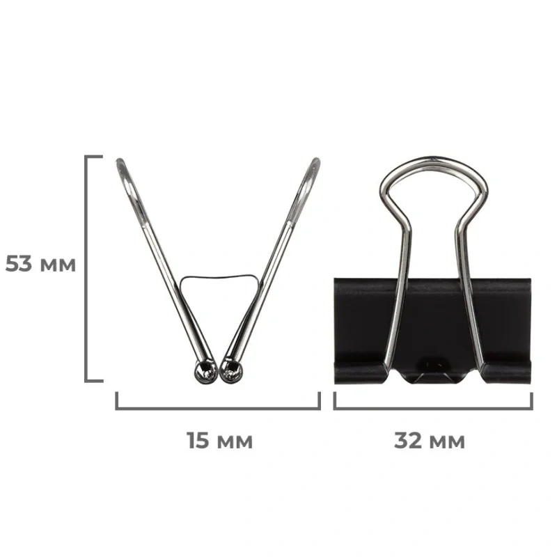 Зажимы для бумаг Attache 19мм, 25мм, 32мм, черные, 12шт/уп