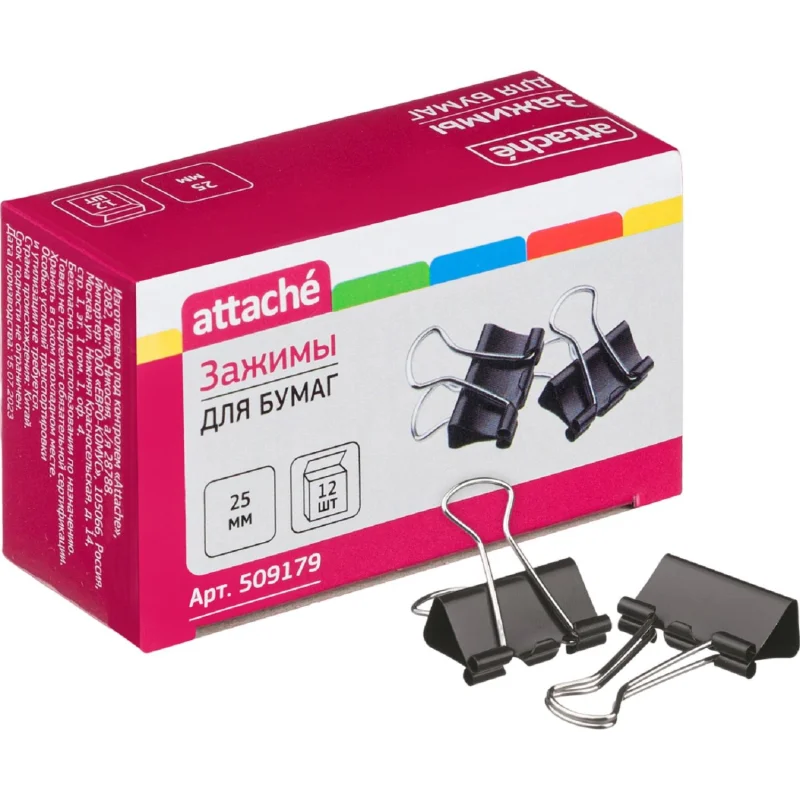 Зажимы для бумаг Attache 25мм, черные, 12шт/уп, в коробке