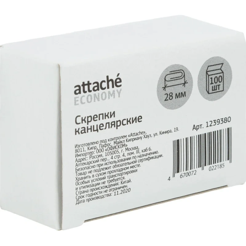 Скрепки канцелярские Attache 28мм, 100шт/уп, стальные