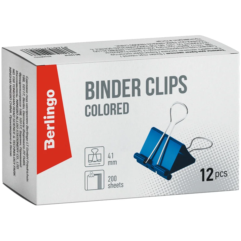Зажимы для бумаг Berlingo 41мм, цветные, 12шт/уп