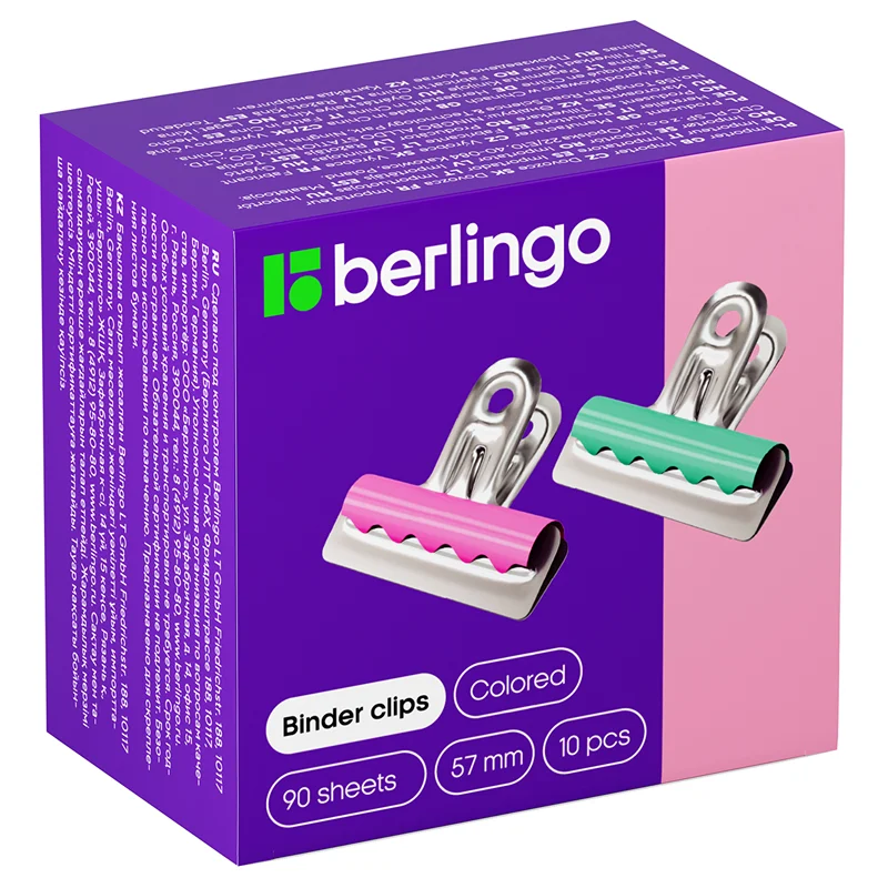 Зажимы для бумаг Berlingo 57мм, цветные, 10шт/уп
