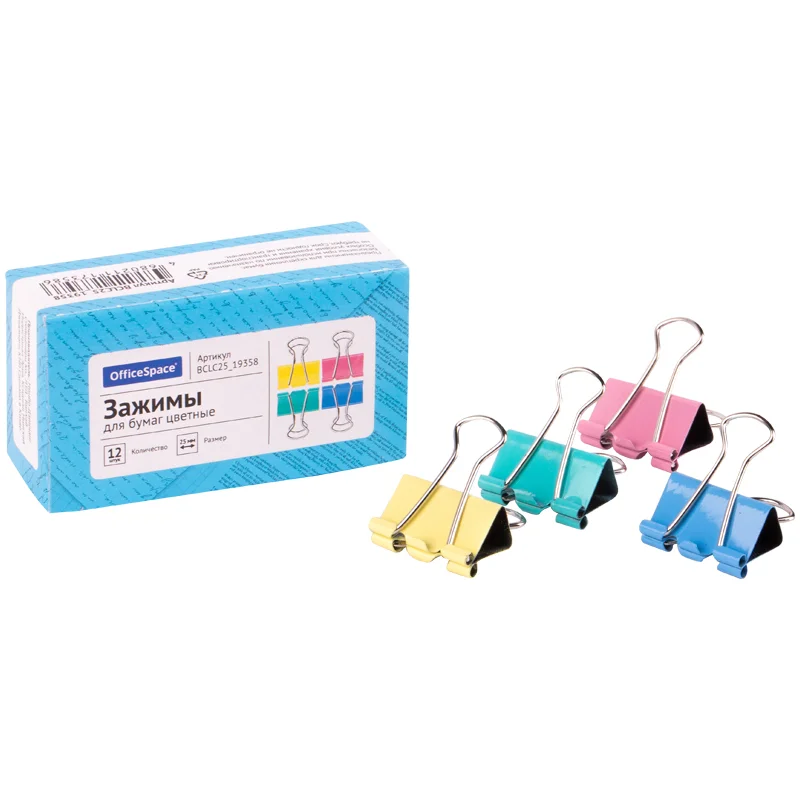 Зажимы для бумаг Officespace 25мм, ассорти, 12 шт/уп