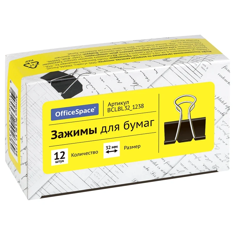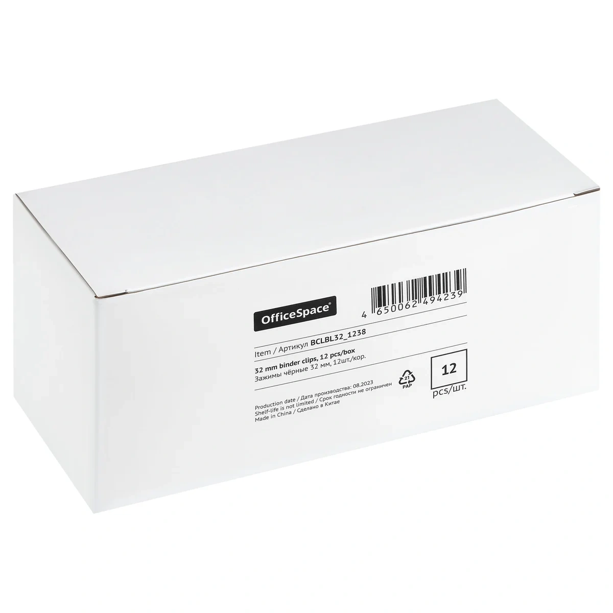 Зажимы для бумаг Officespace 32мм, черные, 12 шт/уп