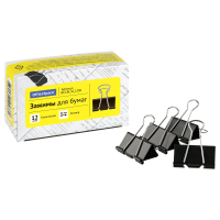 Для скрепления большого количества листов. Не деформируют бумагу. Цвет черный. 12 штук в коробочке.