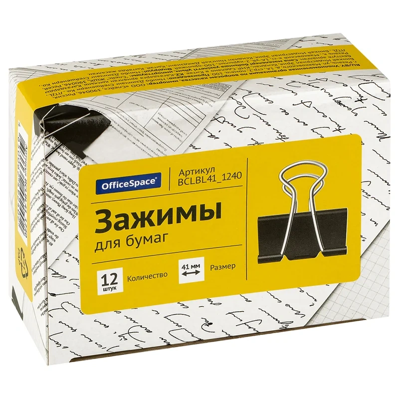 Зажимы для бумаг Officespace 41мм, черные, 12 шт/уп