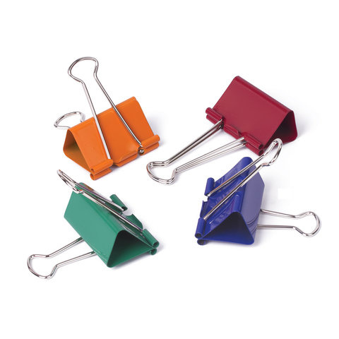 Изготовлены из стали с цветным покрытием. Позволяют скреплять до 230 листов. Не деформируют бумагу. Ширина зажима - 51 мм. Поставляются по 12 штук в картонной коробке.