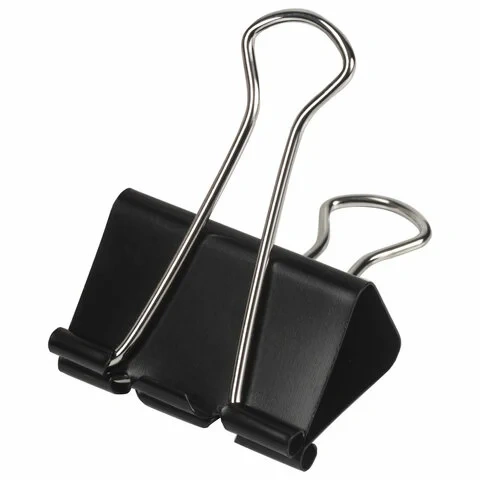 Изготовлены из стали с черным покрытием. Позволяют скреплять до 200 листов. Не деформируют бумагу. Ширина зажима - 41 мм. Поставляются по 12 штук в картонной коробке.