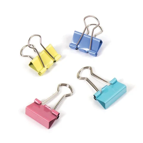 Изготовлены из стали с цветным покрытием. Позволяют скреплять до 60 листов. Не деформируют бумагу. Ширина зажима - 19 мм. Поставляются по 12 штук в картонной коробке.