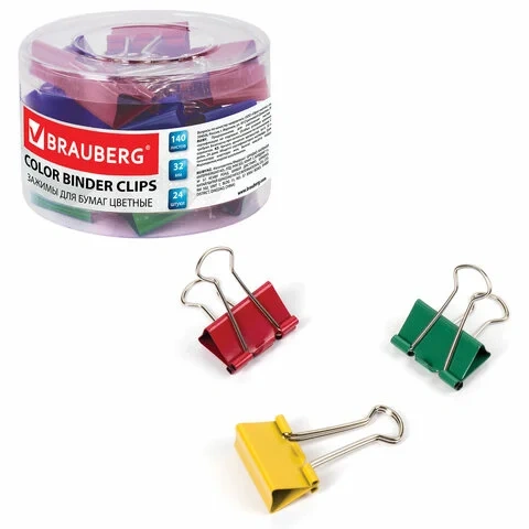 Зажимы для бумаг Brauberg 32мм, ассорти, 24 шт/уп