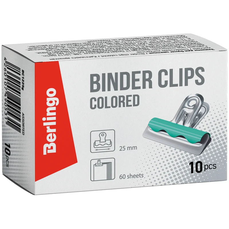 Зажимы для бумаг Berlingo 25мм, цветные, 10шт/уп