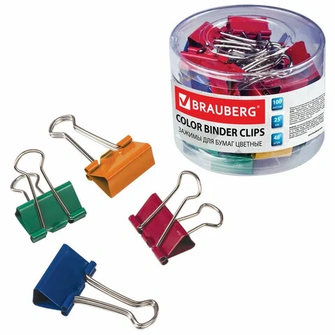 Зажимы для бумаг Brauberg 25мм, ассорти, 48 шт/уп