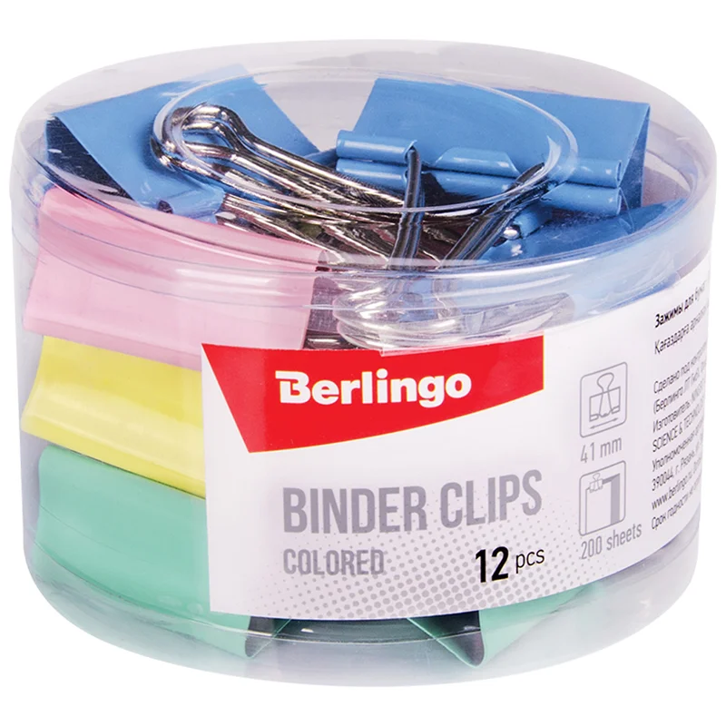 Зажимы для бумаг Berlingo 41мм, ассорти, 12 шт/уп