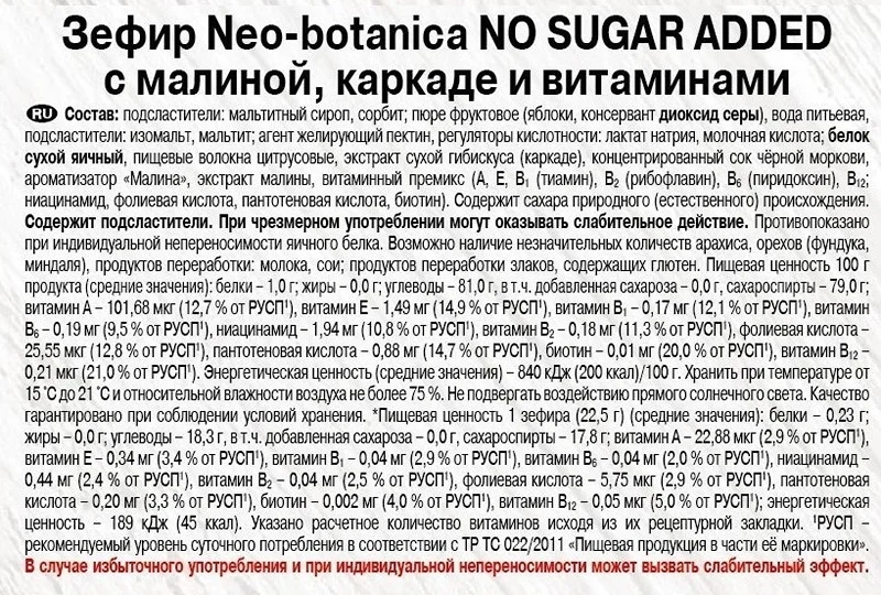 Зефир Neo Botanica Малина-каркаде-витамины без сахара, 135г