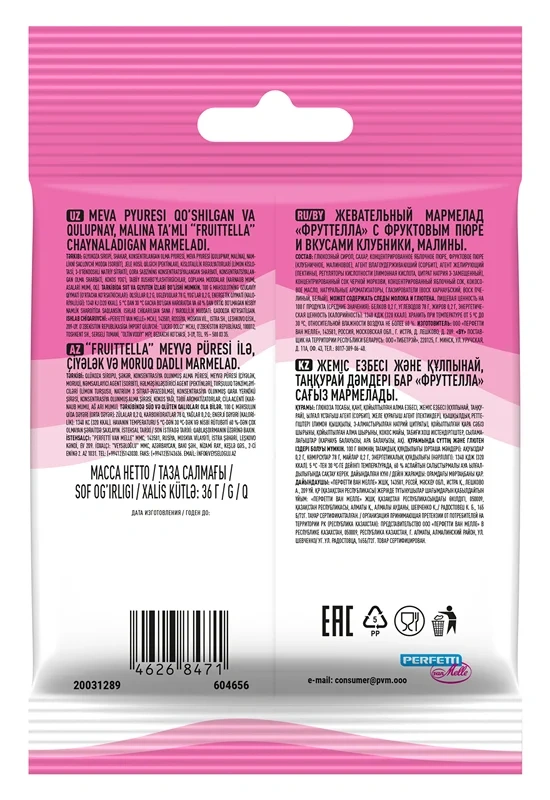 Мармелад жевательный Fruittella с пюре клубники и малины, 36г x 12 шт