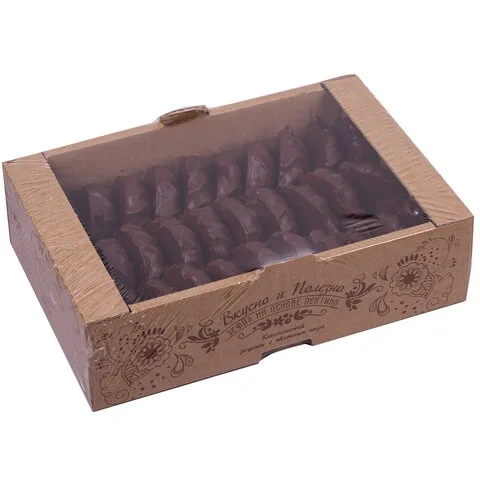 Состав: сахар, пюре яблочное (яблоки протертые, консервант: диоксид серы), патока, вода питьевая, масло растительное, какао-порошок, сыворотка молочная сухая, агент желирующий: пектин, сухой яичный белок, регулятор кислотности: молочная кислота; агент влагоудерживающий: лактат натрия, эмульгаторы: лецитин соевый, сорбитан тристеарат, ароматизаторы.