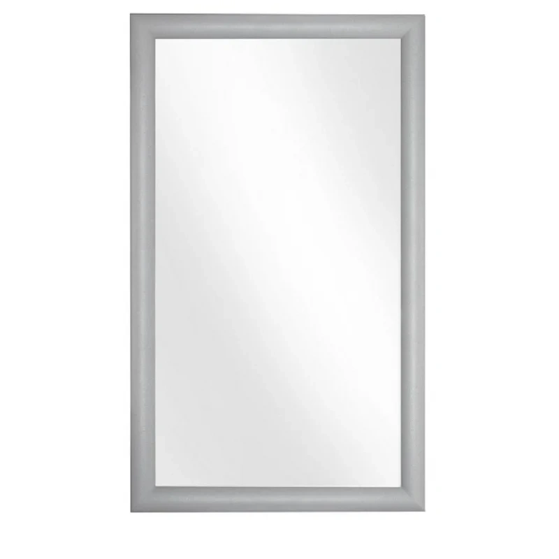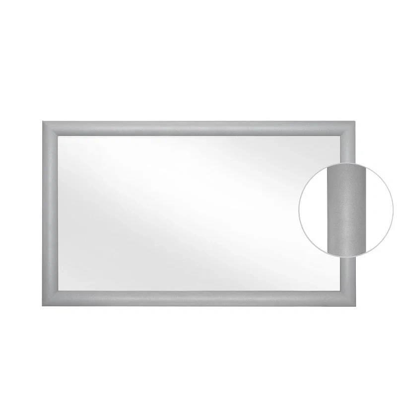 Настенное зеркало Комус Мебель (Attache), в багетной раме. Размер — 1000×600 мм. Рама из деревоплиты (МДФ) с покрытием ПВХ серебристого цвета. Возможно вертикальное или горизонтальное размещение. В комплект входит фурнитура для скрытого крепления.Размер багета (ШхГ): 50×18 мм.