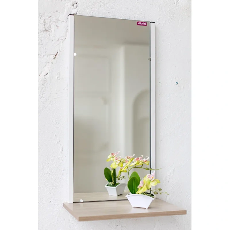 Зеркало настенное TI_Attache Мюлен/полка 420x783 мет.бел/ЛДСП яс.шимо св