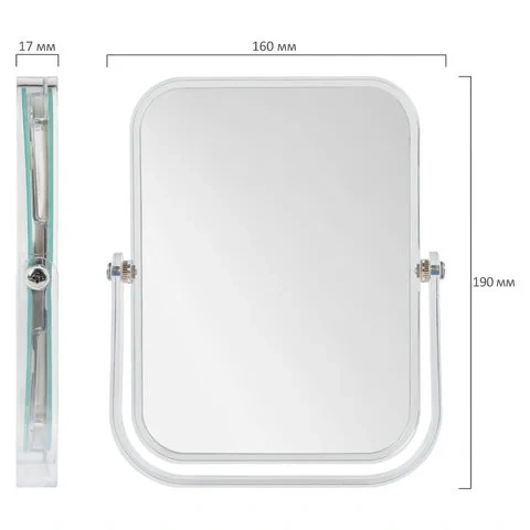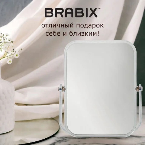 Зеркало настольное BRABIX, 19х16 см, двустороннее, с увеличением, прозрачная рамка, 607423