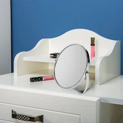 Эффект увеличения позволит тщательно и аккуратно произвести самые сложные манипуляции в макияже. Также удобно для использования во время бритья. Зеркало поворачивается вокруг своей оси, что создает дополнительные удобства при использовании. Оправа выполнена из хромированной стали. Диаметр зеркала составляет 17 см.