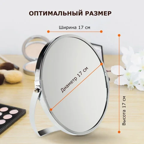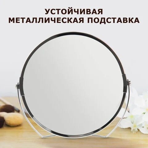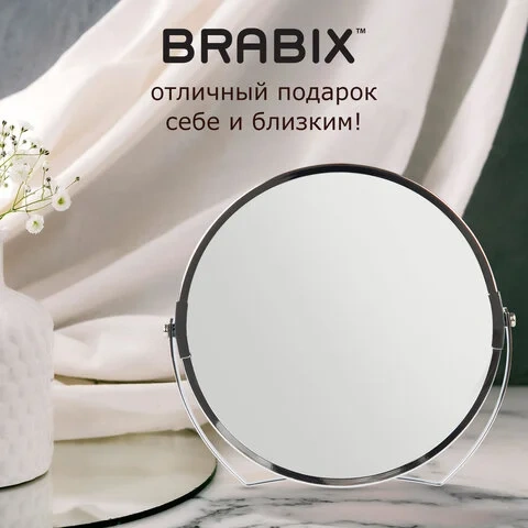Зеркало настольное BRABIX, круглое, диаметр 17 см, двустороннее, с увеличением, рамка из нержавеющей