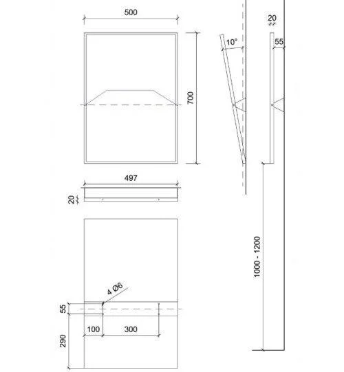 Зеркало NOFER с регулируемым углом наклона, специально разработанное для использования в адаптированных туалетных комнатах. Рама выполнена из нержавеющей стали толщиной 10 мм. обеспечивает долговечность и устойчивость к коррозии. Настенный монтаж с помощью наклонного настенного кронштейна. Крепежные винты входят в комплект. Рекомендуется устанавливать от 1000 до 1200 мм от пола до нижнего края зеркала.
