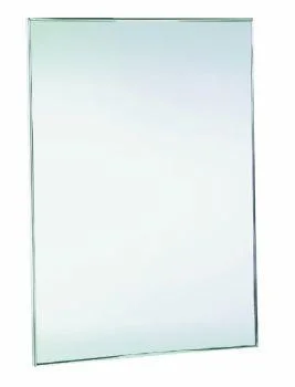 Зеркало антивандальное размером 800х600 мм с рамкой из нержавеющей стали белого цвета. Задняя сторона выполнена из дерева.