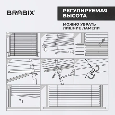 Регулировка высоты осуществляется с помощью шнура управления справа. Также есть возможность убрать лишние ламели.
