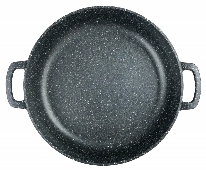 Жаровня Гранит 2.5л 24см с крышкой индукция подходит для приготовления огромного количества разных блюд: для плова, рагу, супов, овощей, грибов и т.д. Жаровня алюминиевая позволяет готовить с минимальным количеством масла и удобен в использовании. Посуда базовой коллекции Гранит с важной особенностью - наличием индукционного дна. Благородное сочетание классического черного цвета с белым крапом - это не только грамотное цветовое решение. Само название серии призвано подчеркнуть такие качества посуды, как высокопрочность и долговечность, подобно внешним свойствам настоящей горной породы.