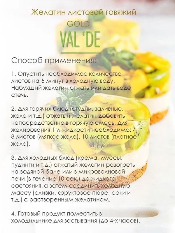 Желатин пищевой Val'de Pro Халяль листовой, 1кг