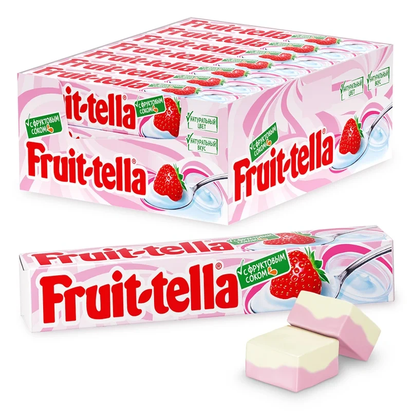 Любители фруктов вдохновили Fruittella на создание вкуснейших жевательных конфет с добавлением фруктового сока, приготовленных из натуральных ингредиентов. Нежное сочетание йогурта и вкуса сочной клубники создают неповторимую жевательную конфету Fruittella Клубника-Йогурт. Идеальна, чтобы наслаждаться самому и делиться с другими!