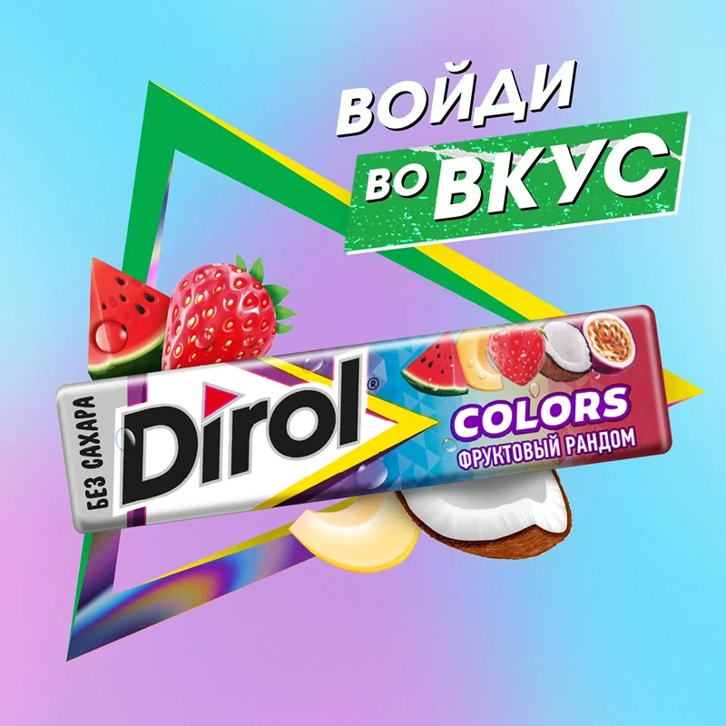 Жевательная резинка Dirol Colors Фруктовый рандом, 13г