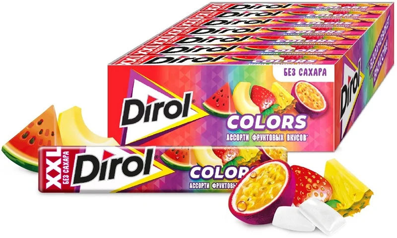 Жевательная резинка Dirol Colors XXL без сахара ассорти Фруктовых вкусов, 19г х 18 шт
