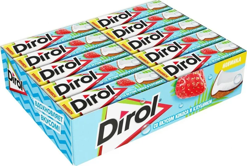 Dirol Клубника/Кокос - это источник освежения, жевательная резинка, которая дарит яркий вкус и прекрасное настроение! Без добавления сахара.