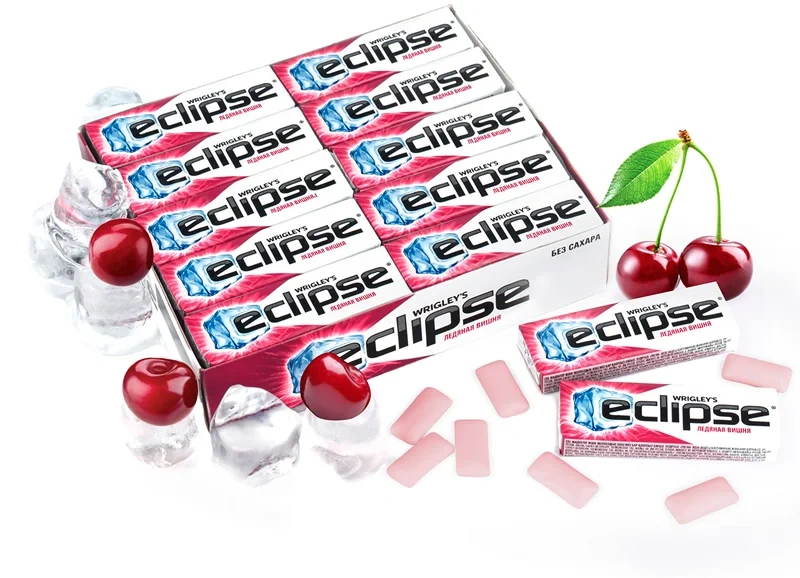 Жевательная резинка Eclipse Ледяная вишня, 13.6г x 30 шт - попробуй по-настоящему ледяную свежесть. Жевательная резинка Eclipse освежает дыхание и придает уверенности в общении. Уверен в дыхании – уверен в себе. Содержит подсластители, при чрезмерном употреблении может оказывать слабительное действие, содержит источник фенилаланина.