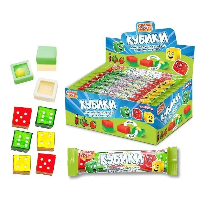 Жевательная резинка Гамми Фрут Кубики, драже внутри, 18г
