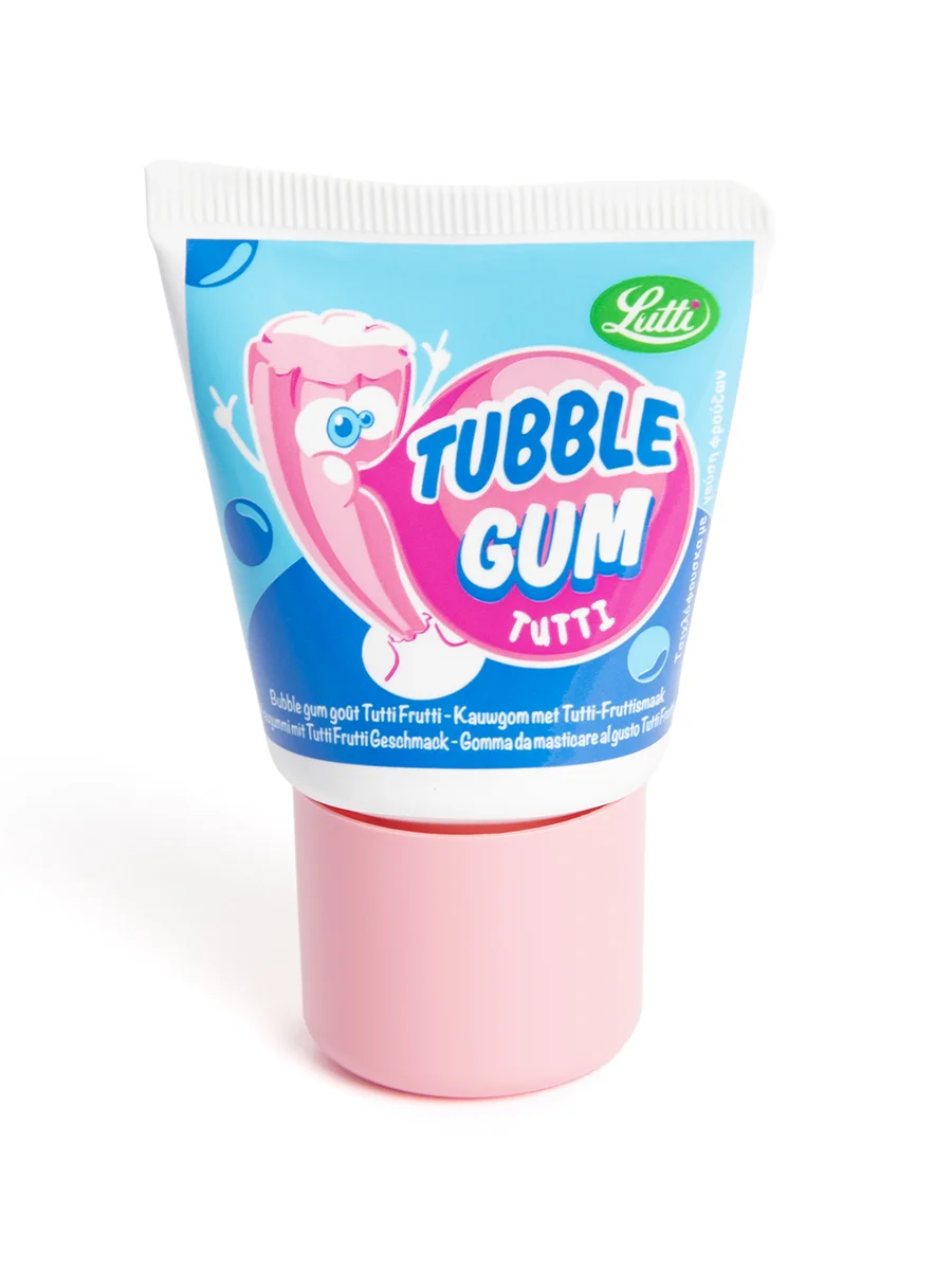 Подарок из Франции, необычная жевательная паста Tubble Gum от Lutti. Одна из старейших кондитерских компаний Франции, производит разнообразные сладости с 1889 года. Tubble Gum Color - это не просто жевательная резинка, это жидкая жвачка в тюбике с прекрасным ароматом тутти-фрутти. С Tubble Gum Tutti ты сможешь надуть по-настоящему большие пузыри. Жидкая жевательная резинка со вкусом тутти-фрутти отличается от обычной жвачки тем, что имеет нежную, пастообразную структуру, которая легко выдавливается из удобного тюбика. Удобная крышечка обеспечивает сохранность свойств жвачки длительное время. Жвачку удобно носить с собой и вы всегда можете порадовать себя ярким насыщенным вкусом в любом удобном для вас месте.