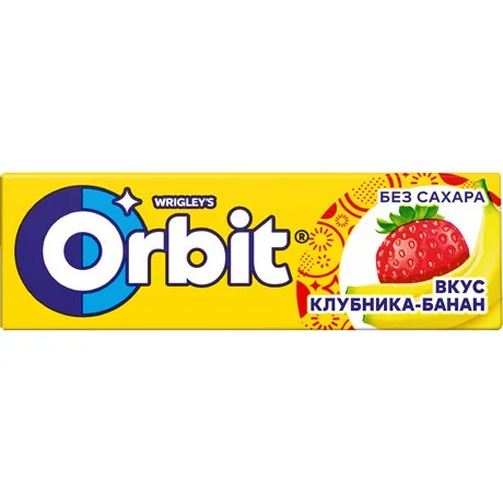 Orbit Клубника-банан - это жевательная резинка без сахара, которая дарит внутреннее ощущение уверенности, так необходимое нам в личной жизни, профессиональных и даже мелких бытовых ситуациях. Попробуйте Orbit Клубника-банан и получите ощущение свежести и заряд уверенности в нужный момент. Жевательная резинка Orbit без сахара помогает поддерживать здоровье зубов: удаляет остатки пищи, способствует уменьшению зубного налета, нейтрализует вредные кислоты, усиливает процесс реминерализации эмали. Употребление жевательной резинки каждый раз после еды способствует поддержанию чистоты и здоровья зубов в дополнение к уходу за ротовой полостью с помощью зубной щетки. Жевательная резинка Orbit без сахара позволит встретить мир с улыбкой и свежим!